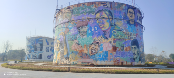 活动当天,老教授们一行先后来到洞庭氮肥厂旧址,东风湖公园和洞庭湖畔的岳阳楼等历史文化名胜之地参观采风写生。虽值寒冬,但巴陵大地依旧呈现出“上下天光,一碧万顷”的壮美气象。而此时的洞庭湖,天空湛蓝如洗,湖面清澈见底,水天相接处泛着银光。只见工业管道和蒸馏塔融合涂鸦艺术后呈现出焕然一新的精神面貌,特别是君山岛在阳光笼罩下,如一幅水墨丹青,朦胧而诗意,让人想起杜甫“昔闻洞庭水,今上岳阳楼”的千古感慨。参加活动的王教授情不自禁引吭高歌了一曲《洞庭鱼米乡》的湖南民歌,这一举动的点燃了老教授们的热情,大家重温北宋著名文学家范仲淹《岳阳楼记》中“先天下之忧而忧,后天下之乐而乐”的家国情怀,感受千年文脉的深厚积淀,实现一次穿越时代的心灵共振。